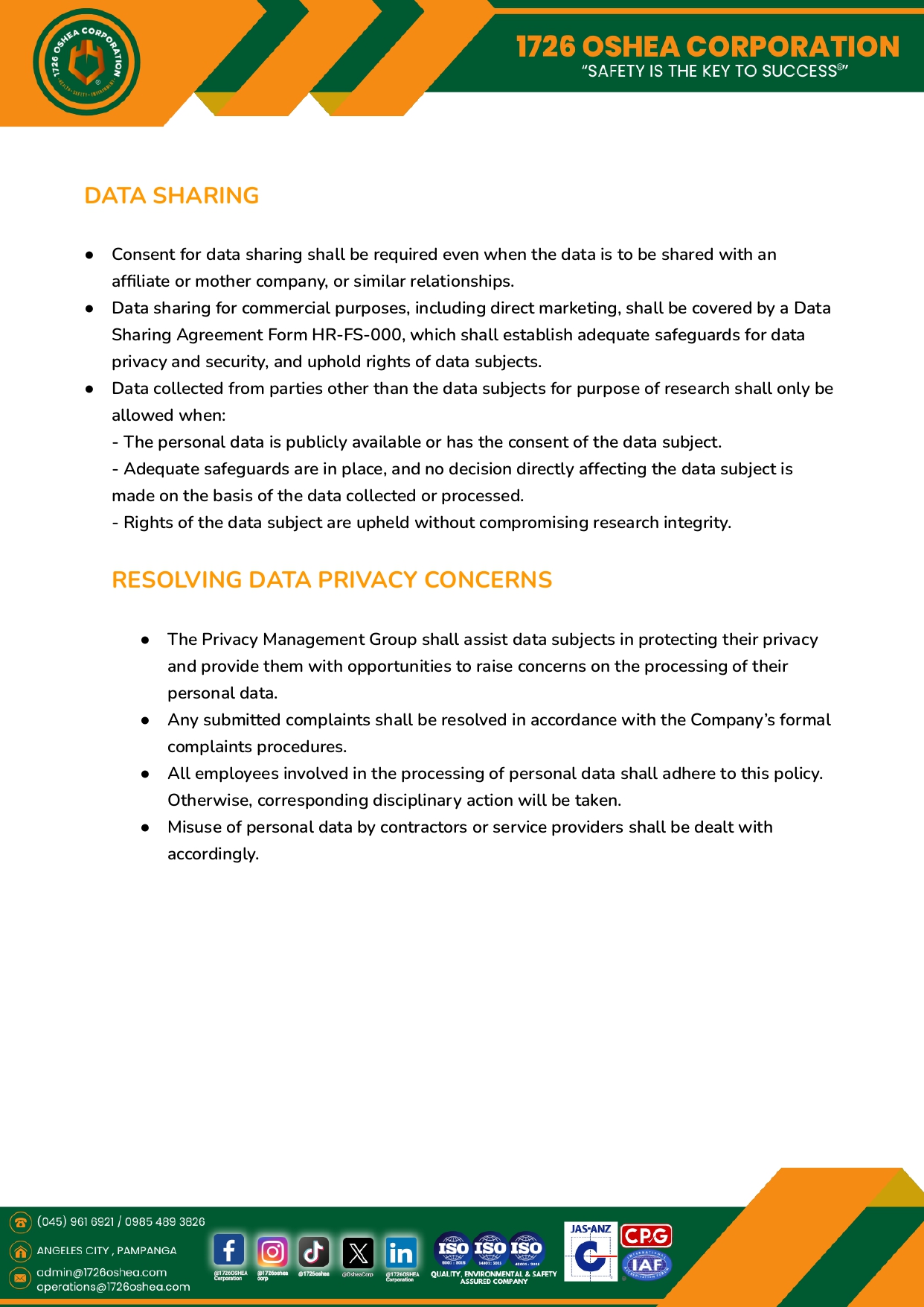Data Privacy Policy – Page 1