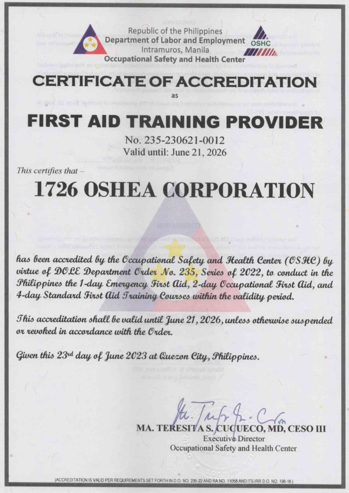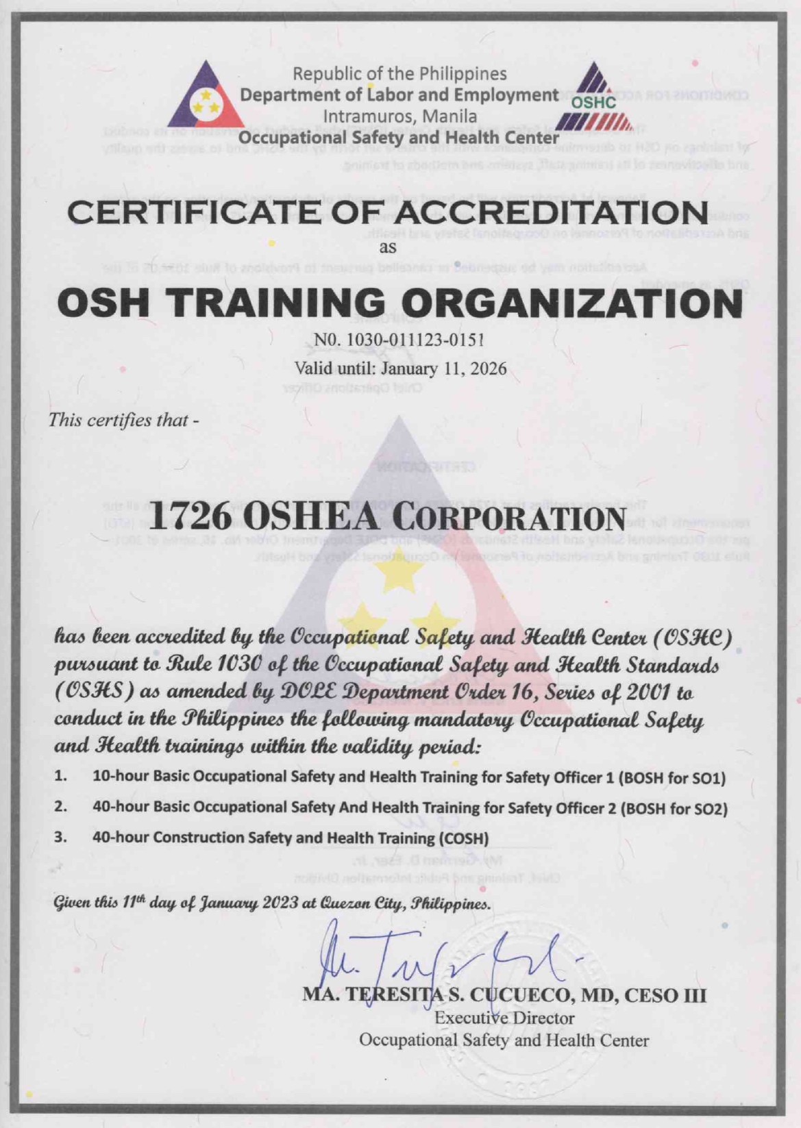 DOLE OSHC STO Accreditation
